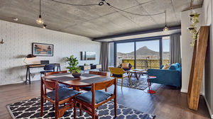 We had carte blanche to design this two-bedroom apartment to increase its bookings. We used jewel colours, mid-modern furnishings and African art. It's now one of the GUEST FAVOURITE airbnbs in Woodstock.